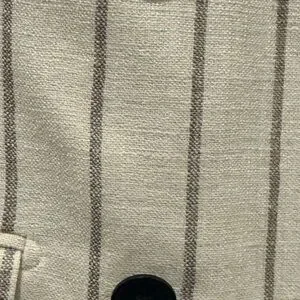 Suistudio (Suitsupply) Sophisticated ivory, double-breasted blazer with elegant brown stripes.