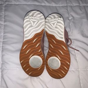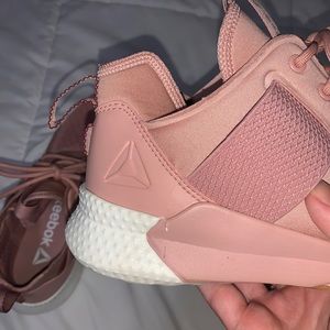 Stylish Reebok athletic shoes. Features a sleek pink design. Comfortable and durable.