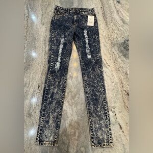 Brand new with tags. VIP Jeans. Size 11/12 women’s. Dark blue acid wash. Skinny. Mid rise. Distressed