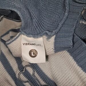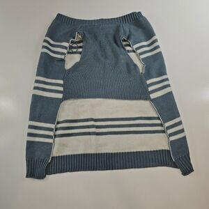 Vibrant Life Blue White Stripe Dog Sweater Pet Apparel Size L Bone Patch