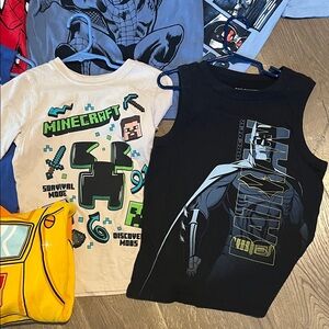 Vibrant collection of kids' graphic t-shirts featuring popular characters. Perfect for adding fun to any wardrobe. All size 6/7. Good shape. Many never worn.