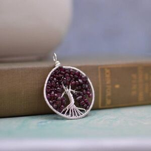 This Tree of Life Pendant is Wire Wrapped with Sterling Silver and Garnet Chips. Each pendant is handmade, and no two are ever exactly the same, making each one special and individual.