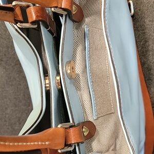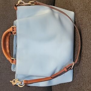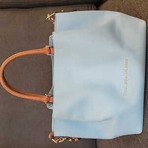 Dooney & Bourke Sky Blue LeatherTote Tan Handles