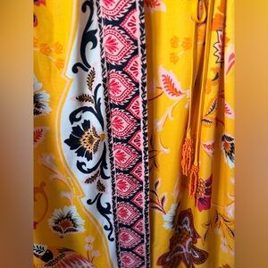 FARM RIO ANTHROPOLOGY Floral Yellow Wrap Maxi Dress