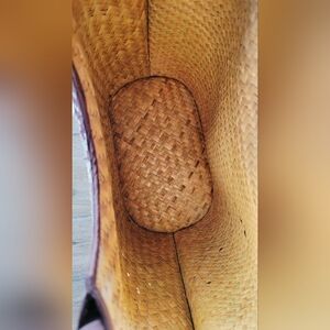 Brown & Cream Handwoven Straw Beach Tote Bag w/Handles