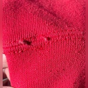 Please see images for items condition. There is wear, pilling and fading. There is uneven red tone/ saturation from washing. Mickey is embroidered. There is wear to the embroidery. There are a few spots on the hem with flaws in the stitching.