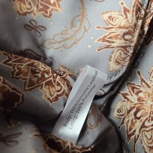 "Wanderlust" floral pattern. Includes one large zippered security pocket and multiple organizational slip pockets.