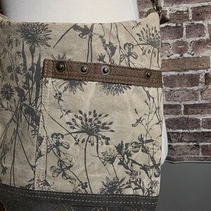 Myra bag - crossbody - Gray, Canvas, Cotton, Leather details- Beautiful condition- Inside is CLEAN (see photos) - Outside is free of marks, stains. Measures: 14h 13w all items as is.