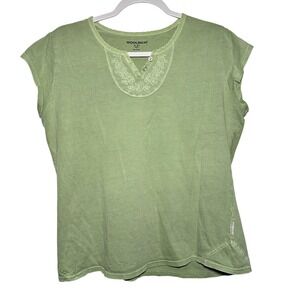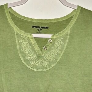 WOOLRICH Womens Green Embroidered Henley T Shirt Size L