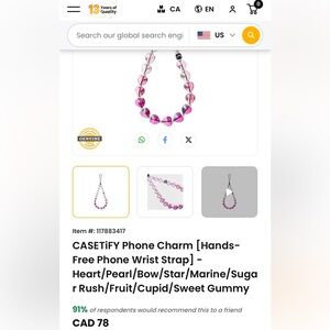 CASETiFY Phone Charm [Hands-Free Phone Wrist Strap] - Heart/Pearl/Bow/Star/Marine/Sugar Rush/Fruit/Cupid/Sweet Gummy Brand new. Retail price $78 CAD + tax