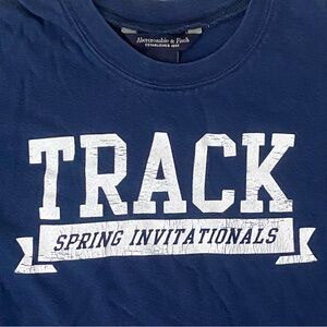Vintage Abercrombie & Fitch long sleeve t-shirt. Navy with white. Good used condition. No rips or tears but the white writing “track spring invitational” shows some cracking and fading (see 2nd photo). Size S.
