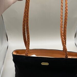 Brahmin Nylon Navy and Brown Braided Leather Shoulder Bag Brahmin Suede Interior