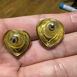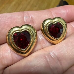 Vintage Gold Tone Red Rhinestone Heart Earrings