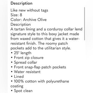 Barbour Croxdale Waxed Cotton Jacket in archive olive size 8