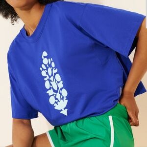 Inspired by the brand's athlete ambassadors who embody fearless, unapologetic authenticity, you'll push boundaries and prove that greatness never stands still in a boxy, all-cotton T-shirt centered finished with unfinished edges and centered with the brand's beautiful buti logo. Color combination is electric shock and sea blues on this tee. Great extra details, like double stitch around detail around neckline, raw roll hem at bottom, path logo on bottom front, and outer hang tag on back neck. Short sleeve crewneck is 100% cotton. Oversized, comfy, relaxed fit with cozy material. Labeled XS (extra small) but very oversized fit, with boxy shape, measures 24 inch pit to pit and 19 inch length. Pit to pit measurements easily fit small, medium, or large, just be mindful of the crop length for how you want it to fit. Easy care, machine wash, tumble dry. Like new, worn only once. Smoke free and pet free home. Please check out my other items...I'd love to make a discounted bundle for you. Thank you!!