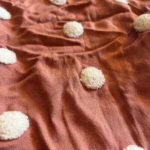 Elegant blush top with textured cream details. Perfect for any occasion.
