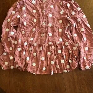 Super cute altar’d state pink polka dot blouse! Long sleeved with gathered sleeves as shown. Has buttons going down the back. In excellent condition with no signs of wear.