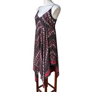 Express Summer Floral Bouquet Handkerchief Hem Boho Dress, Sz M