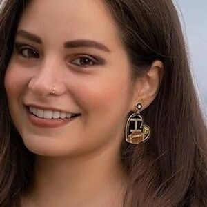 Keywords: football fan, sports jewelry, rhinestone accent, dangle earrings, fashion jewelry, gift for her, game day style, heart design, yellow gem, sparkly, unique earrings, statement earrings