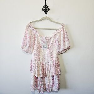 NWT Japna Floral Smocked Mini Dress Size L Off The Shoulder Tiered Prairiecore