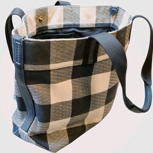 Coach Buffalo Plaid City Tote Blue White Large Canvas Bag Double Handles Large