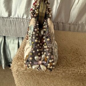 Charming clutch with intricate beadwork. Features floral accents in cream and blue. Perfect for elegant occasions. Beautiful bag with pearls - this is a clutch - EUC- worn 1 time. Happy Poshing!
