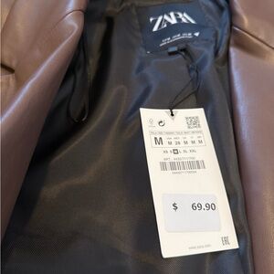 Stylish Zara leather blazer. Perfect for a sleek look. Ideal for versatile wear.