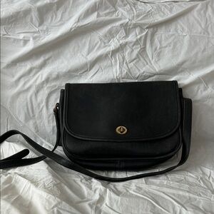 Stylish black crossbody bag by Coach. Features gold-tone hardware. Perfect for everyday use.