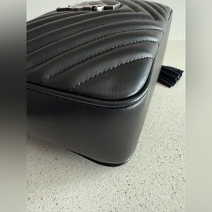 This darling bag is in very GOOD condition - tiny rubbing on front hardware. The silver “YSL” on the front is supposed to look aged but there are two spots on the “S” curves where the aging has rubbed off and the silver is smooth. There are no other flaws or blemishes.