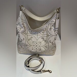 Coach Celeste Winter White and Gold Studded Bag W/Crossbody Whip Stitch Strap