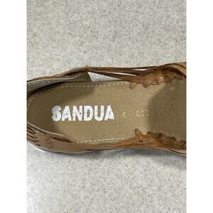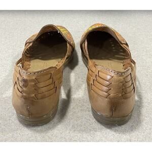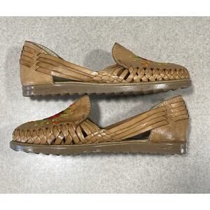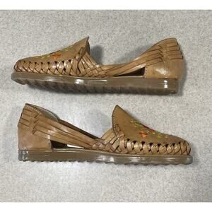 Sandua Women's Floral Embroidered Flats Size 7 Mexican Sandals Brown Leather