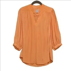 CHICO'S TEXTURED STITCHED V-NECK BALLOON SLEEVE BLOUSE EUC SIZE XS SMALL 0