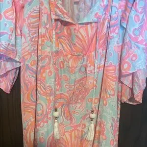 Lilly Pulitzer Pink and Orange Alanna Off Shoulder Dress XL