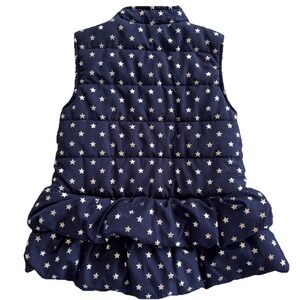 Tommy Hilfiger Snap Up Puffer Vest Girl's 6 Blue Shiny Silver Stars Logo