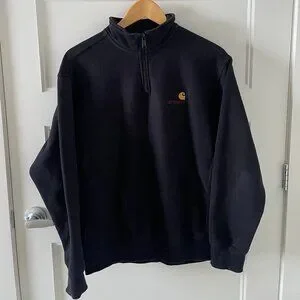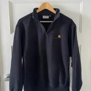 Carhartt WIP Mens Half Zip American Script Sweat Top Black - Excellent Condition