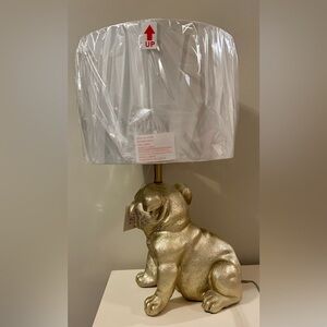 Illuminate your space with this charming gold bulldog table lamp. Its unique design adds a playful touch to any room.