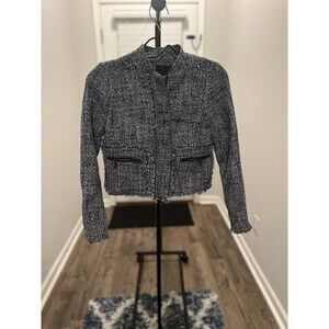 Banana Republic Navy & White Tweed Zip-Up Blazer Jacket – Size 00