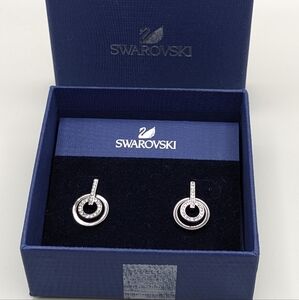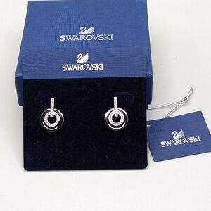 Swarovski Circle Hoop Earrings in Gunmetal and Clear Crystal. New on original card in box, NWT