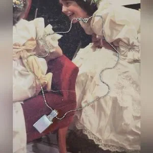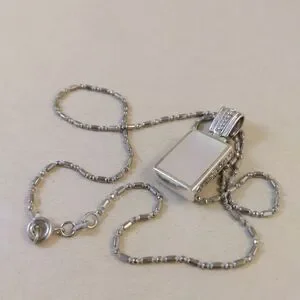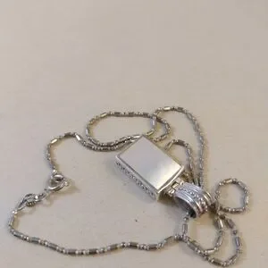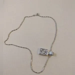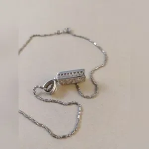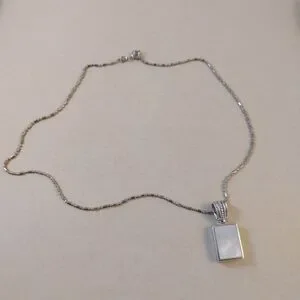 This elegant silver pendant necklace features a stunning iridescent design, perfect for adding a touch of sophistication to any outfit.