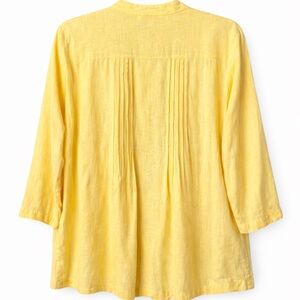 charter club linen tunic, yellow linen top, pintuck linen blouse, summer linen shirt, relaxed fit tunic, v neck linen top, coastal summer top, breathable linen blouse, xl linen tunic, lightweight summer top
