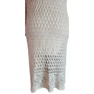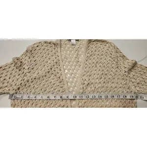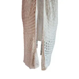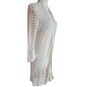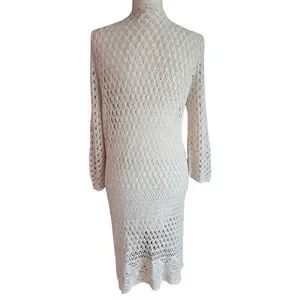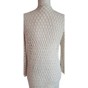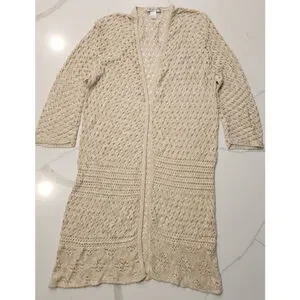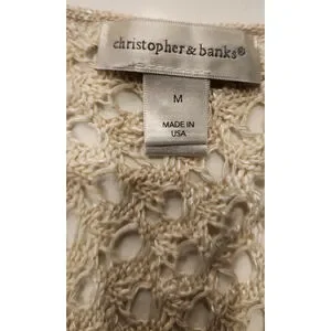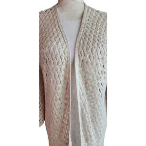 Christopher & Banks Off White Cream Crochet Knitted Open Long Cardigan Women's M