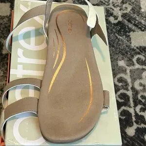 Comfortable Aetrex sandals for women. White color with secure adjustable straps. Perfect for casual outings. This sandal is pre-owned in excellent condition.