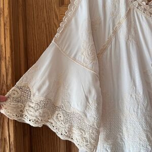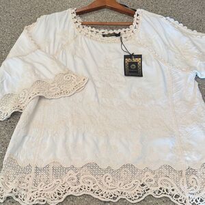 SPIAGGIA DOLCE Embroidered Lace Boho Top Crochet Trim Bell Sleeve Blouse *NEW*