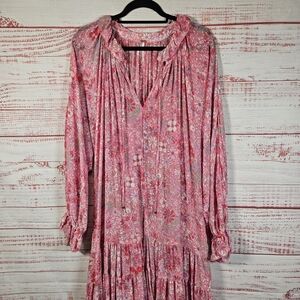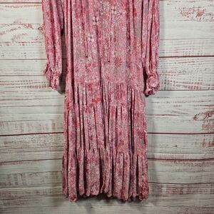 Free People Feeling Groovy pink floral long sleeve sheer maxi dress. Like new condition, tags removed, Never worn only tried on. Slip not included. This dress is so cute! Tiered, ruffle at neckline with optional tie.