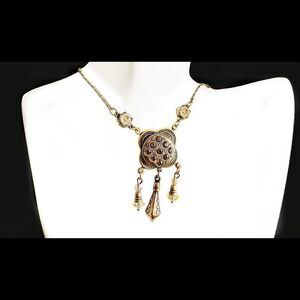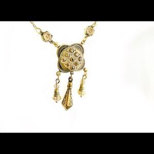 Vintage Banana Bob citrine champagne crystal ox gold pendant necklace Edwardian