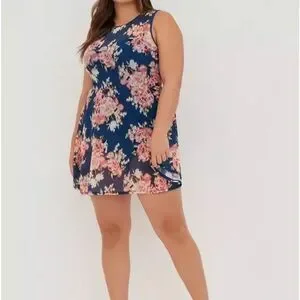 Torrid Floral Underwire Long Mesh Overlay Swim Dress w/ Brief Size 2X DD/F