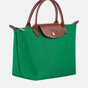 Longchamp Le Pilage Small Green Tote with Brown Details