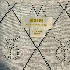 Anthropologie Maeve White V-Neck Sweater with Black Accents