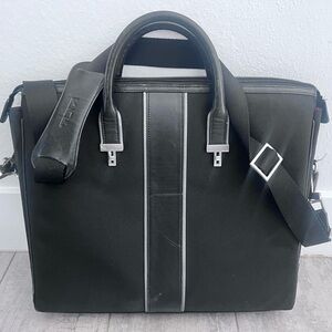 Tumi Large Red Briefcase Elements Collection Nylon Leather Handle Zip Laptop