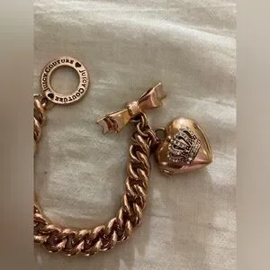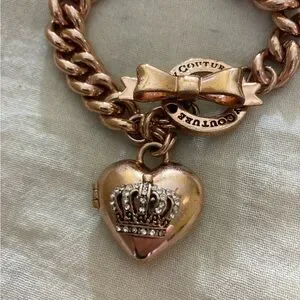 Juicy Couture Heart Locket Copper Tone Charm Bracelet Cute Gift